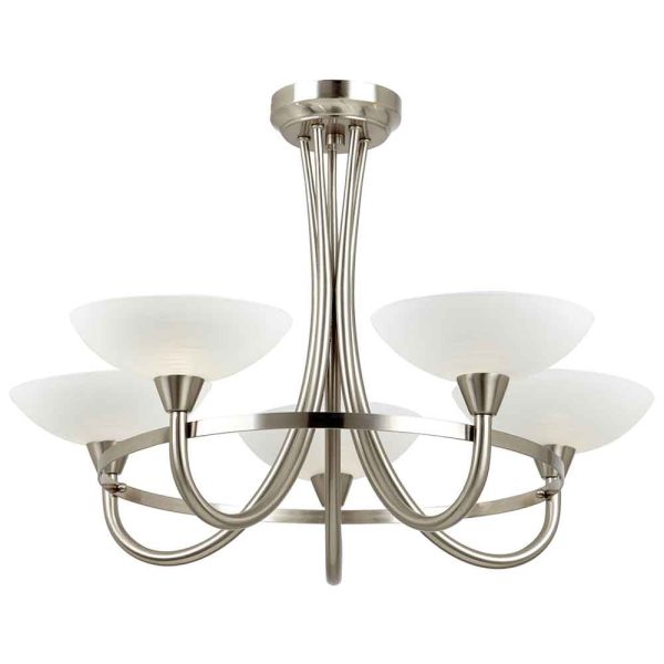 Auburn Glass 5 Ceiling Light With Steel Frame In Satin Chrome